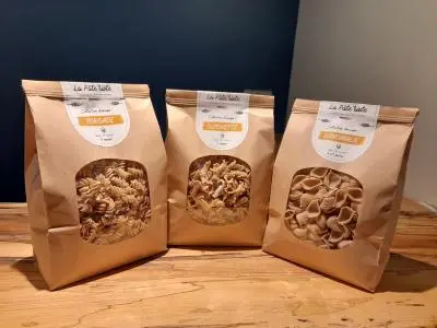 Les pâtes sont ensachées à la main directement sur place. Les sachets se ferment facilement et sont surtout ré-utilisables !